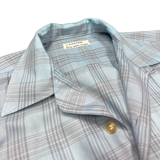 Vintage Light Blue Plaid Short Sleeve Button Down