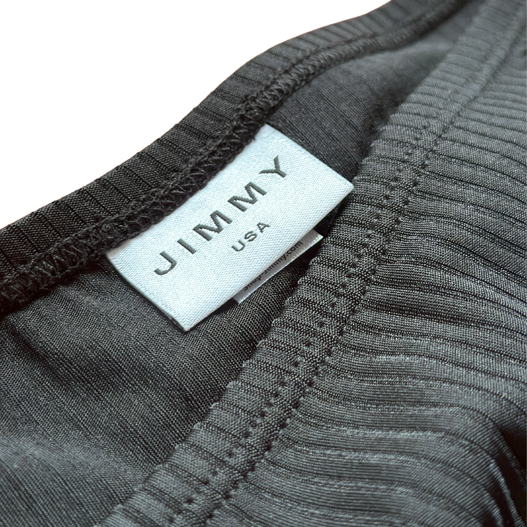 This ribbed brief is a sexy statement when lounging by the pool or strolling on the beach. Made in USA using Italian-made Econyl fabric made from 90% recycled waste - like fishing nets and ocean plastic. The elevated and efficient design, high quality craftsmanship, and soft, functional fabric make your summer days refined and relaxed. This fabric is breathable with excellent shape retention, UV protection, and is resistant to pilling, sun cream and oil, chlorine, and more. The perfect brief to wear all day long and a step above your basic black swim brief. Happy swimming, lounging, and summering!